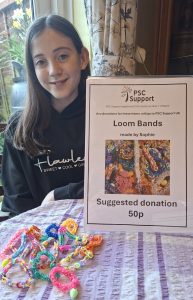 To mark Rare Disease Day, Jenny stood up in front of her local church to share her personal experience of living with PSC. Her daughter Sophie was on hand selling and making bespoke loom band bracelets and key chains after being inspired by Liyana.